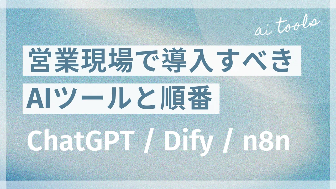 n8n・Dify・GPTs もその代表例です。これらをただ技術的に語るのではなく、営業プロセスに落とし込む具体的なイメージがなければ活用は進みません。